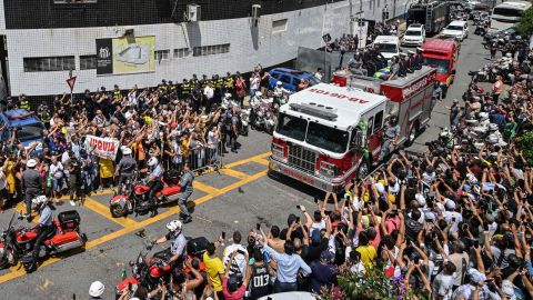 Scos apoi de pe stadion într-o maşinuţă electrică, sicriul a fost mutat pe platforma unei maşini de pompieri şi acoperit cu două drapele: cel al Braziliei şi cel al clubului Santos FC.