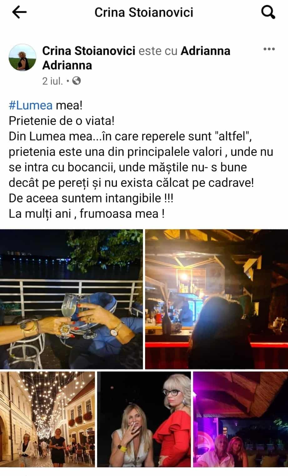 Doamna din imagini este nimeni alta decât președinta tribunalului Giurgiu, Adriana Pencea! Aceasta din urmă folosea un cont de Facebook cu numele Adrianna Adrianna, loc în care se găseau și fotografii în care apare alături de avocata reținută. Imediat după anunțul de ieri, atât contul judecătoarei, cât și cel al avocatei au fost închise.Asta nu înseamnă însă că fotografiile nu mai există..
