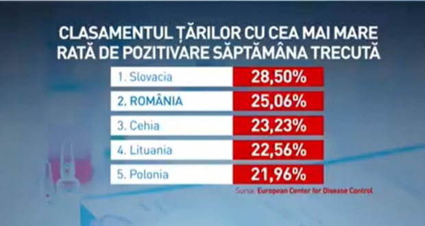 Totodată, România ocupă locul 2 la rata de pozitivare.