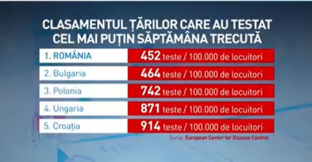România a avut săptămâna trecută cea mai slabă rată de testare din Europa, conform unui raport al Centrului European pentru Controlul Bolilor.