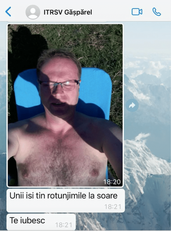 Mihai Gășpărel, șeful Gărzii Forestiere Suceava, i-a trimis o poză la bustul gol activistului de mediu Tiberiu Boșutar. Alături de fotografie, acesta i-a transmis lui Boșutar că îl iubește, arată NewsWeek.