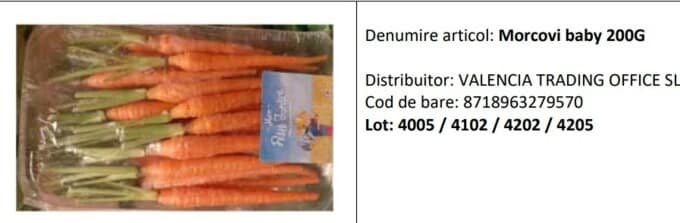 Metro a retras un sortiment de morcovi (baby carrots) din cauza depășirii limitelor de Oxamil, care este un pesticid.