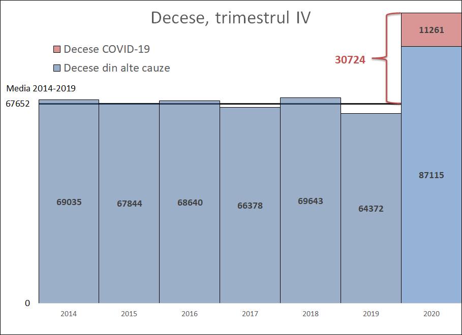 În acest context sociologul Mircea Kivu aduce în atenția publică raporul INS care arată că în trimestrul IV – 2020 s-au înregistrat în total 98.372 decese; în perioada 2014-2019, media deceselor înregistrate în trim. IV a fost de 67.652. Cu alte cuvinte, în 2020 am avut, în trim.IV, cu 45% mai multe decese decât media anilor precedenți.