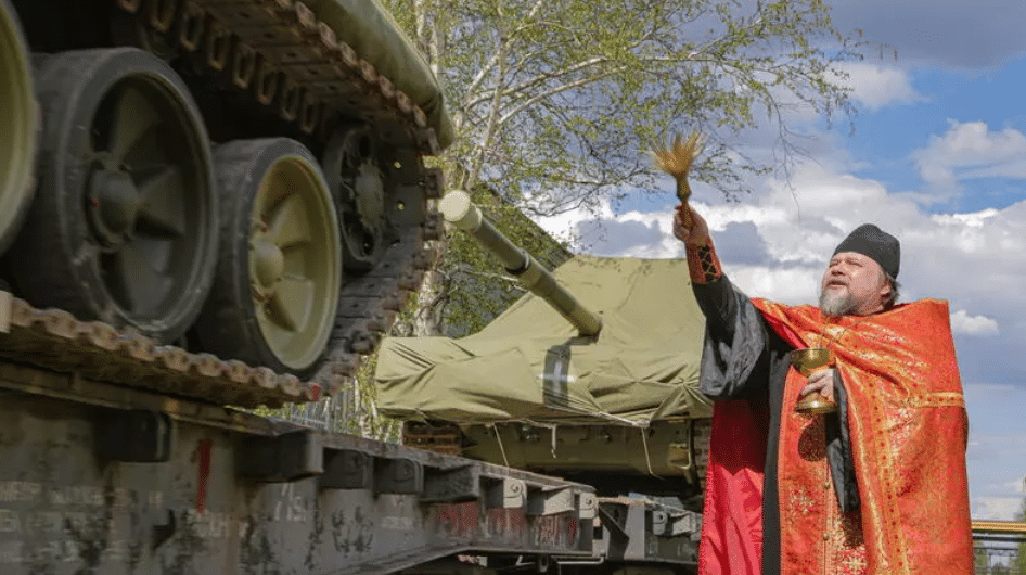Imaginile virale în care un preot rus sfințește tancurile de generație nouă T-90M „Proryv” ce a fost trimise în Ucraina, șochează o lume întreagă.