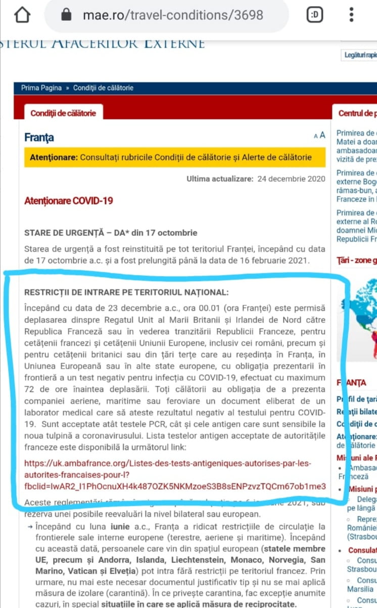 După cum știți, în aceste zile s-a creat o ușoară isterie la frontierele Franței, în ceea ce îi privește pe cei ce vin din Marea Britanie. O tulpină nouă a coronavirusului, depistată în Anglia, a pus pe jar întreaga Europă. Așa că măsurile de precauție au redevenit drastice. Jurnalist.ro a studiat normele și procedurile impuse de Franța pentru a permite accesul străinilor pe teritoriul său.