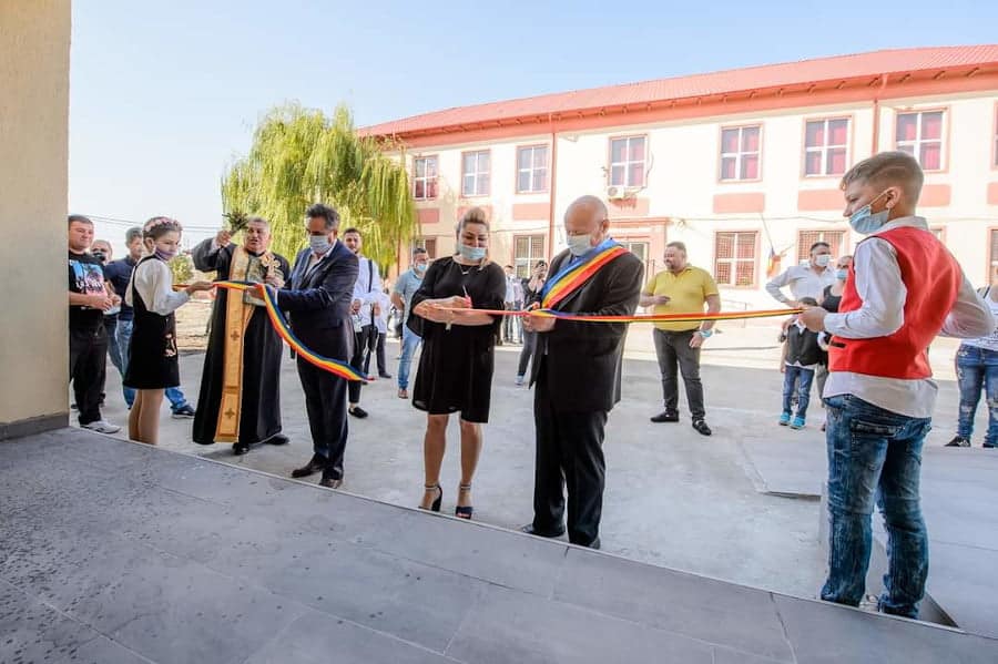 Directorul susține că primarul i-a cerut să organizeze inaugurarea școlii și că nu îl poate refuza pentru că ”îi mai ajută cu dezinfectant”.