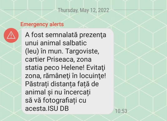 Locuitorii au sunat la 112 și au alertat autoritățile. Ulterior, a fost transmis un mesaj Ro-Alert, locuitorii fiind sfătuiți să stea în casă până la prinderea leului.