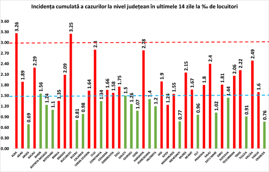Bucureştiul, care a trecut duminică de pragul de 3 în ceea ce priveşte incidenţa cumulată a cazurilor din ultimele 14 zile raportate la mia de locuitori, înregistrează o creştere a acestui indicator, la 3.25.