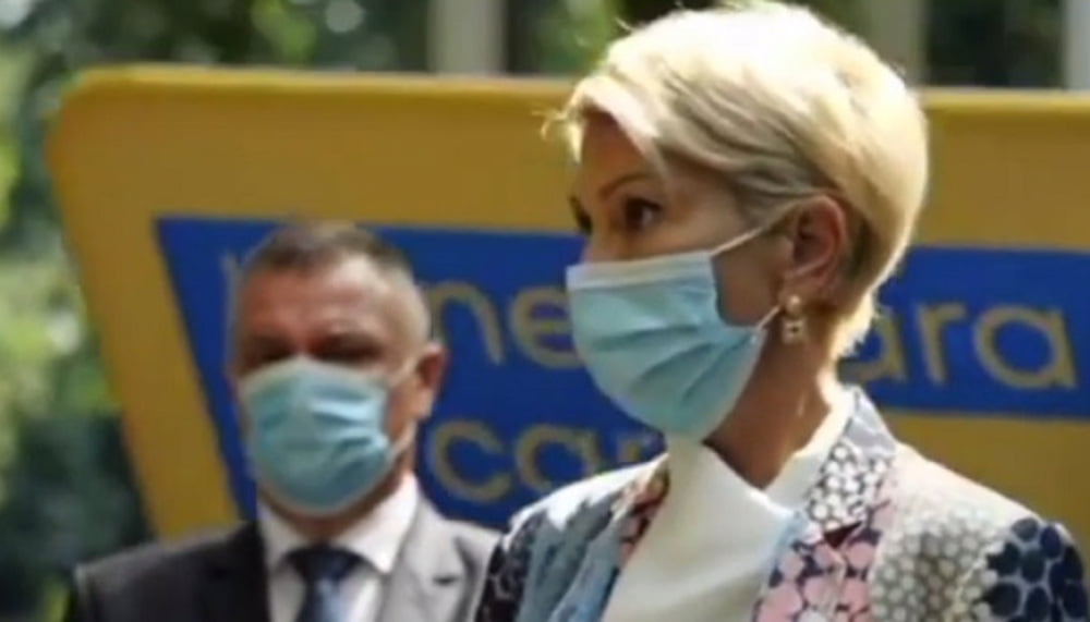 În momentul în care care a căzut panoul, Turcan vorbea despre absorbția fondurilor europene și redeschiderea școlilor.
