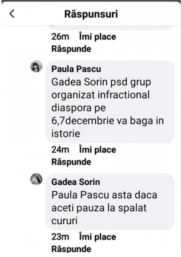 „Sa-ti fie rusine de jignirele mafiote ce le faci contra diasporei. Diaspora munceste pe bani cinstiti si nu fura si manipuleaza banii statului cum faceti voi mafiotii PSD”, este un alt comentariu postat.