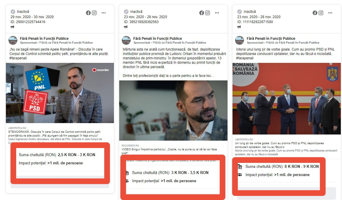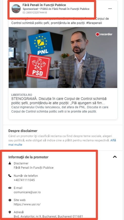 După cum puteți vedea, vorbim de mii de euro, în doar câteva zile, bani investiți pentru a face zob PNL-ul în online. Dar nici asta nu e bomba. Până la urmă, oricine are dreptul să își cheltuiască banii pentru a injura sau compromite un partid. Bomboana pe coliva relației din viitoarea guvernare abia acum vine! Priviți cine este în spatele platformei „Fără penali în funcții publice” și cine plătește de fapt campania anti-PNL: