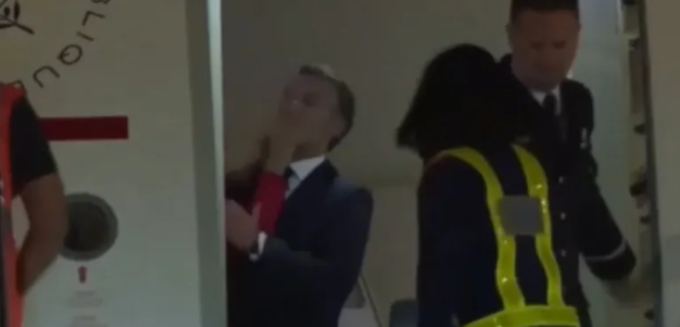 Imaginile filmate duminică seara de AP pe aeroportul din Hanoi surprind uşa avionului deschizându-se şi apariţia siluetei lui Emmanuel Macron, încă în interiorul avionului.
