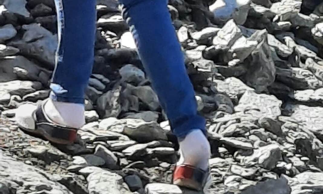 O fotografie ce înfățișează o persoană care urcă încălțată doar în papuci pe munte a devenit virală în mediul online.