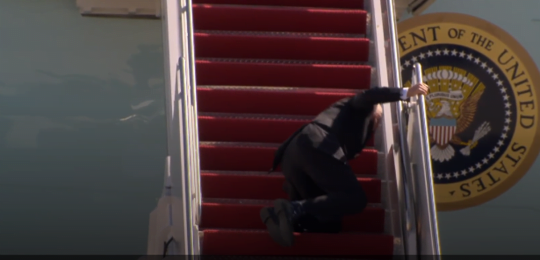 Viralul zilei! Președintele SUA a căzut pe scara Air Force One