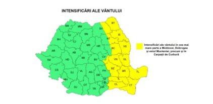 Astfel, pe parcursul zilei de sâmbătă, în cea mai mare parte a Moldovei, în Dobrogea şi estul Munteniei, vor fi intensificări ale vântului cu viteze de 50…65 km/h. În zona Carpaţilor de Curbură rafalele vor fi de 70…80 km/h.