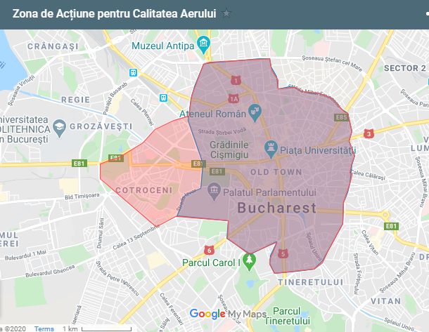 Zona de Acţiune pentru Calitatea Aerului este delimitată în nord, chiar din Piaţa Victoriei, în Est ajunge până la strada Traian, în Sud până în Parcul Tineretului, iar în Vest până în zona Cotroceni.